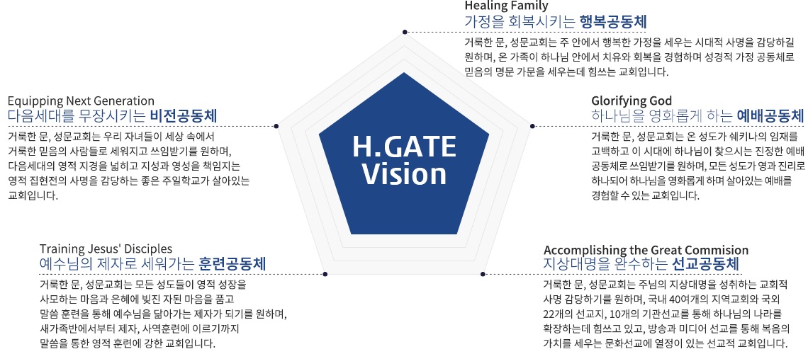 H.GATE는 한 사람을 예수님의 온전한 제자로 세워 민족과 열방을 섬기게 하는 성문교회 목회비전입니다.