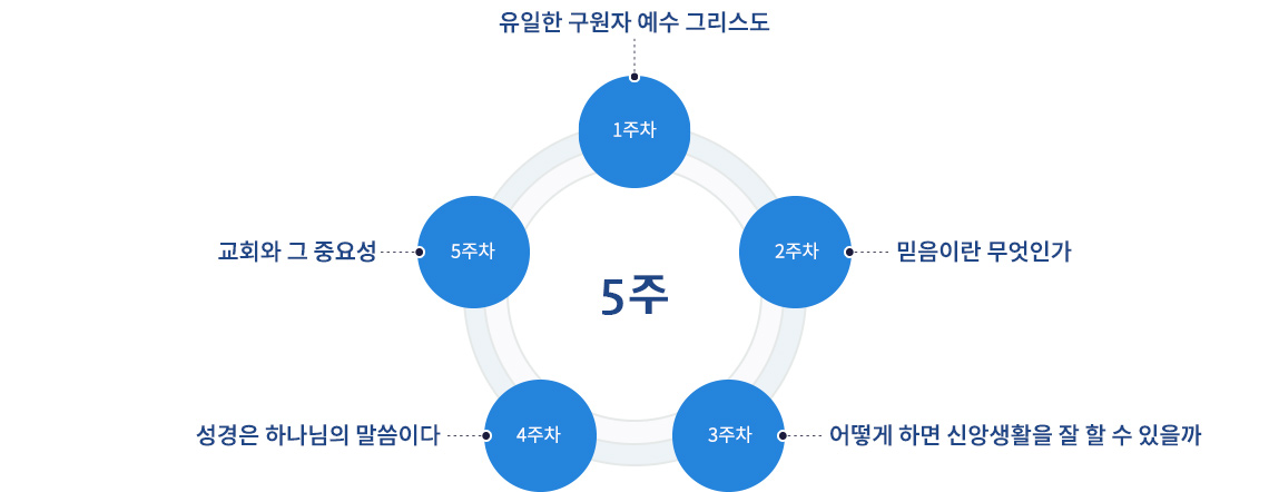 새가족 모임은 5주 과정으로 순환되며 어떤 주에 시작하든 5과를 마칠 수 있습니다.